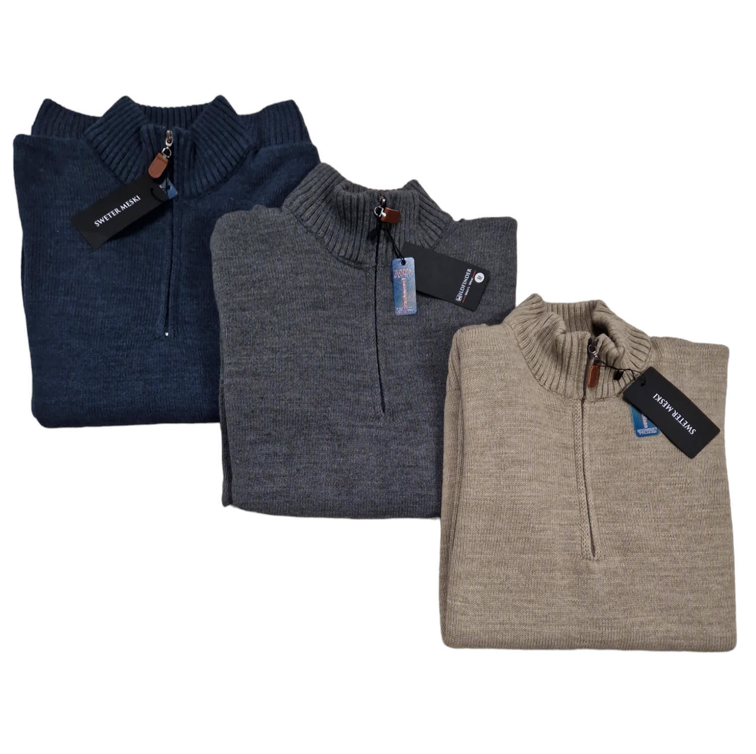 Bawełniany sweter męski ze stójką Sweter, który znajdziesz w sklepie No Name, to idealny wybór na chłodne dni. Wykonany jest z miękkiej i przyjemnej w dotyku mieszanki bawełny i akrylu. Stójka zapinana na krótki zamek zapewnia ciepło i komfort. Sweter dostępny jest w rozmiarach M-3XL, w kolorach: szary/grafit, granat/jeans oraz beż. Cechy produktu: Wykonany z mieszanki bawełny i akrylu Niezwykle miękki i przyjemny w dotyku Stójka zapinana na krótki zamek Dostępny w rozmiarach M-3XL Detale produktu: Skład: 50% bawełna, 50% akryl Wymiary (mierzone na płasko +/-2cm): M: szerokość pod pachami:51cm, długość:67cm, długość rękawa:68cm L: szerokość pod pachami:53cm, długość:68cm, długość rękawa:68cm XL: szerokość pod pachami:56cm, długość:68cm, długość rękawa:68cm XXL: szerokość pod pachami:57cm, długość:68cm, długość rękawa:68cm 3XL: szerokość pod pachami:59cm, długość:70cm, długość rękawa:68cm Sugerowane zastosowanie: Na co dzień Do pracy Na spotkania Na spacer Opieka: Pranie w pralce w temperaturze 30 stopni Prasowanie w temperaturze 110 stopni Nie suszyć w suszarce bębnowej
