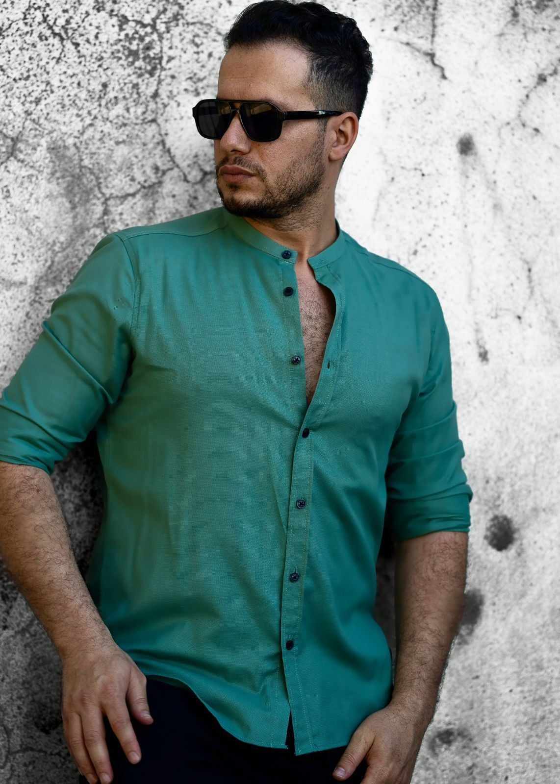 Koszula męska ze stójką długi rękaw Koszula męska z długim rękawem to klasyczny i elegancki element garderoby. Wykonana z wysokiej jakości materiału, zapewnia wygodę noszenia. Stójka zapewnia doskonałe dopasowanie do sylwetki, a długi rękaw sprawia, że koszula jest idealna na oficjalne okazje. Dodatkowo, koszula ma subtelne wykończenie guzikami, które dodają jej szyku. Dzięki swojemu uniwersalnemu designowi, ta koszula będzie pasować do wielu stylizacji. Rozmiary: M, L, XL, XXL,3XL Materiał: 95% bawełna, 5% laikra Produkt turecki