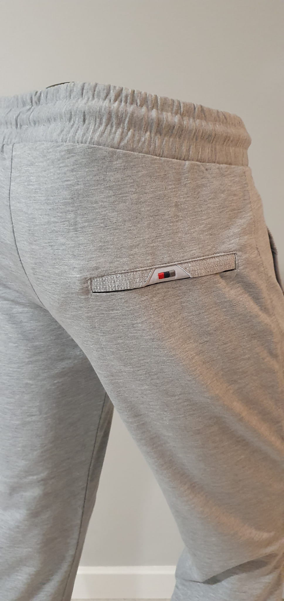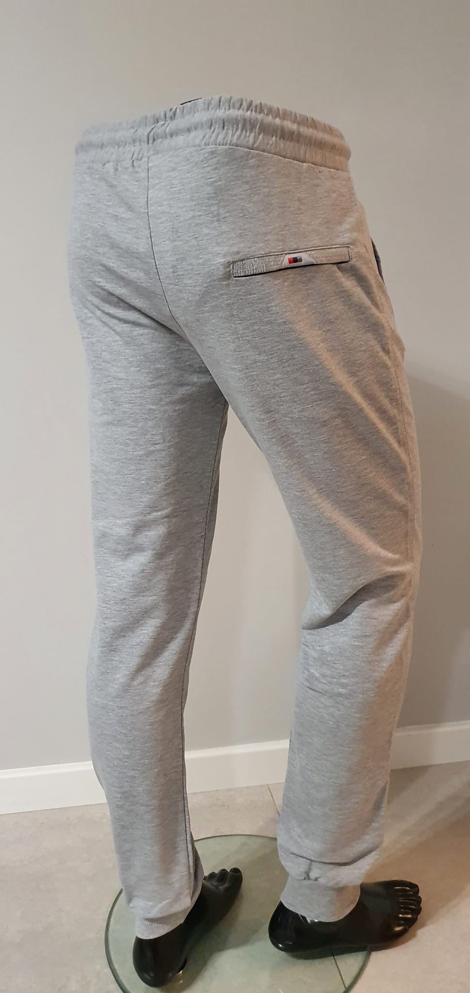 Spodnie dresowe marki Tomy Parker w kolorze jasno szarym ze ściągaczem Każdy mężczyzna potrzebuje czasem poczuć się komfortowo i na luzie, szczególnie kiedy wraca do domu po dniu pracy albo prowadzi aktywny tryb życia i cały czas jest w ruchu. Proponujemy spodnie dresowe z wysokiej jakości bawełny, z kieszeniami zapinanymi na zamek oraz ściagaczem u dołu nogawki. Męskie spodnie dresowe Tomy Parker sprawdzą się w domu, na spacerze czy na siłowni. Poza tym są wykonane z wysokogatunkowych tkanin, dzięki czemu posłużą Ci przez lata.  Będą pasować nie tylko do bluz od kompletu, ale także do t-shirtów, koszulek polo, kurtek typu bomber czy nawet – trampek i ramoneski.   Produkt Turecki    Materiał: cienki                 80% bawełna                 15% poliester                   5% elastan  Rozmiary: M  szerokość w pasie 37cm, długość nogawki 106cm L szerokość w pasie 38cm, długość nogawki 110cm XL szerokość w pasie 40cm, długość nogawki 109cm XXL szerokość w pasie 42cm, długość nogawki 110cm