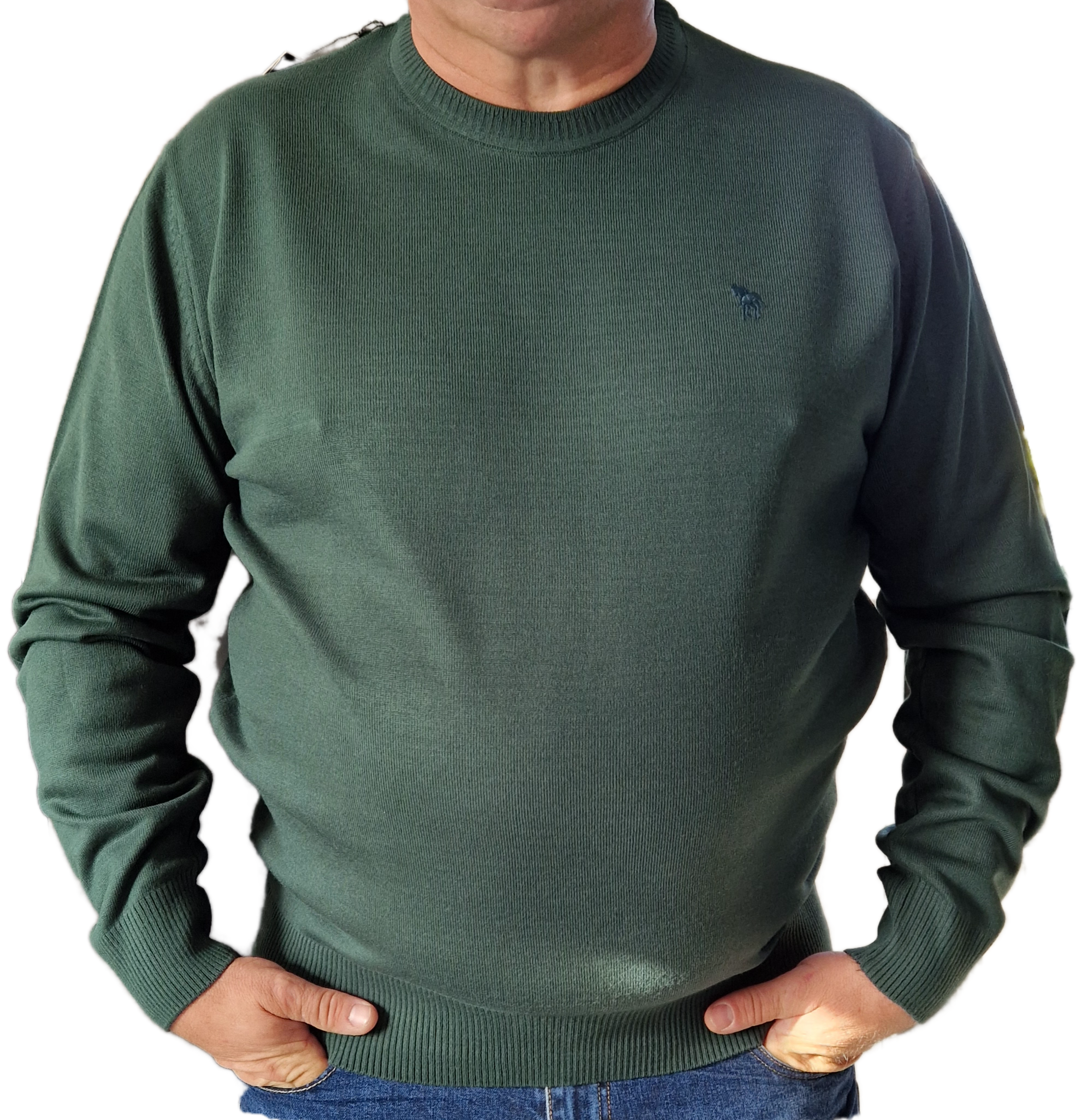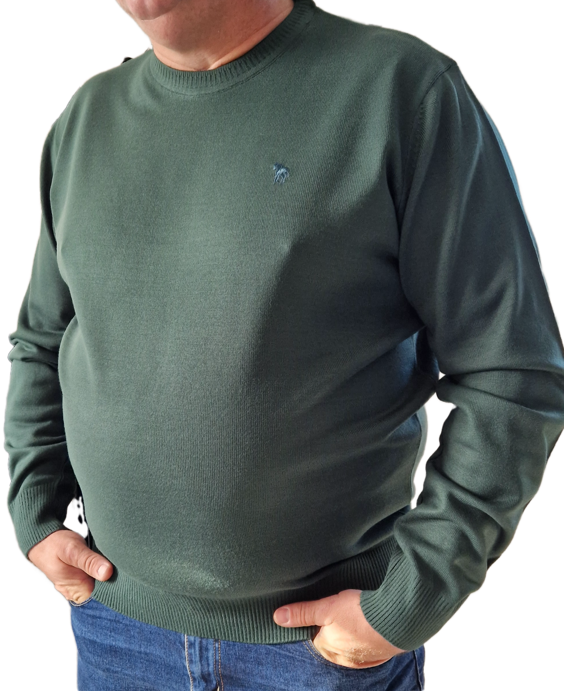 Sweter męski z wełny – klasyka na chłodne dni Szukasz ciepłego i stylowego swetra na jesień i zimę? Nasz model z naturalnej wełny spełni Twoje oczekiwania! Miękki w dotyku materiał zapewnia komfort noszenia, a klasyczne kolory: granatowy i zieleń butelkowa, pasują do wielu stylizacji. Dlaczego warto wybrać nasz sweter? Naturalna wełna: Zapewnia doskonałą izolację termiczną i jest przyjemna w dotyku. Klasyczny fason: Pasuje do wielu stylizacji, zarówno casualowych, jak i bardziej formalnych. Szeroka gama rozmiarów: Dostępny w rozmiarach dużych, aby każdy znalazł idealny dla siebie. Wysoka jakość wykonania: Dzięki zastosowaniu wysokiej jakości materiałów, sweter posłuży Ci przez wiele sezonów. Skład: 70% wełna, 30% akryl Pielęgnacja: Prać ręcznie w niskiej temperaturze, prasować w niskiej temperaturze. Tabela rozmiarów: +/- 2cm Rozmiar Szerokość (cm) Długość (cm) Długość rękawa (cm) 4XL 66 75 69 5XL 67 78 69 6XL 69 80 69 7XL 70 80 70 Jak prawidłowo zmierzyć sweter? Aby wybrać odpowiedni rozmiar swetra, warto zmierzyć swój ulubiony sweter, który dobrze na Tobie leży. Pomoże Ci to porównać wymiary i wybrać odpowiedni rozmiar. Pomiary należy wykonać: Szerokość: Mierzymy od pachy do pachy, przykładając centymetr krawiecki poziomo. Długość: Mierzymy od ramienia (najwyższego punktu) do dołu swetra. Długość rękawa: Mierzymy od szwu ramiennego do końca mankietu.